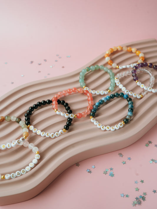 Custom Word Gemstone Bracelet |Rose Quartz, Amethyst, Apatite, Obsidian, Green Aventurine, Garden Quartz, Clear Quartz, Cherry Quartz, Topaz
