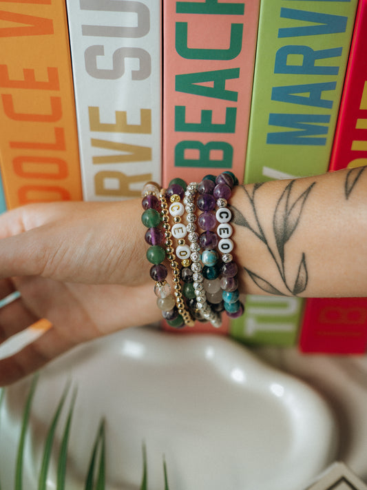 CEO Gemstone 3 Piece Bracelet Stack | Custom Stretch Bracelet Set | Personalized Jewelry for Small Business Owners