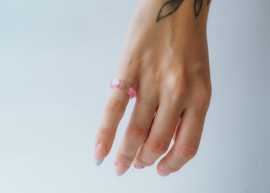 Pink Rose Ring - Flower Resin Rings