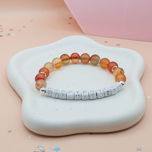 Booktrovert Gemstone Bracelet – Matte Carnelian, Flower Quartz & Peacock Agate