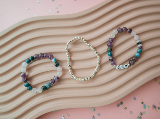 CEO Gemstone 3 Piece Bracelet Stack | Custom Stretch Bracelet Set | Personalized Jewelry for Small Business Owners