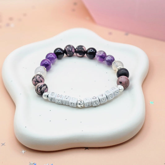 Smut Lover Gemstone Bracelet – Rhodonite, Amethyst, Flower Agate & Silver Obsidian