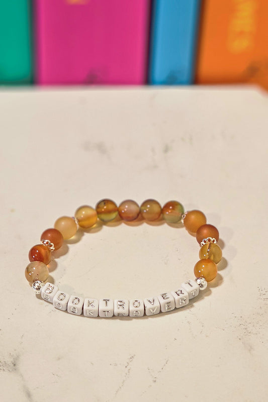 Booktrovert Gemstone Bracelet – Matte Carnelian, Flower Quartz & Peacock Agate
