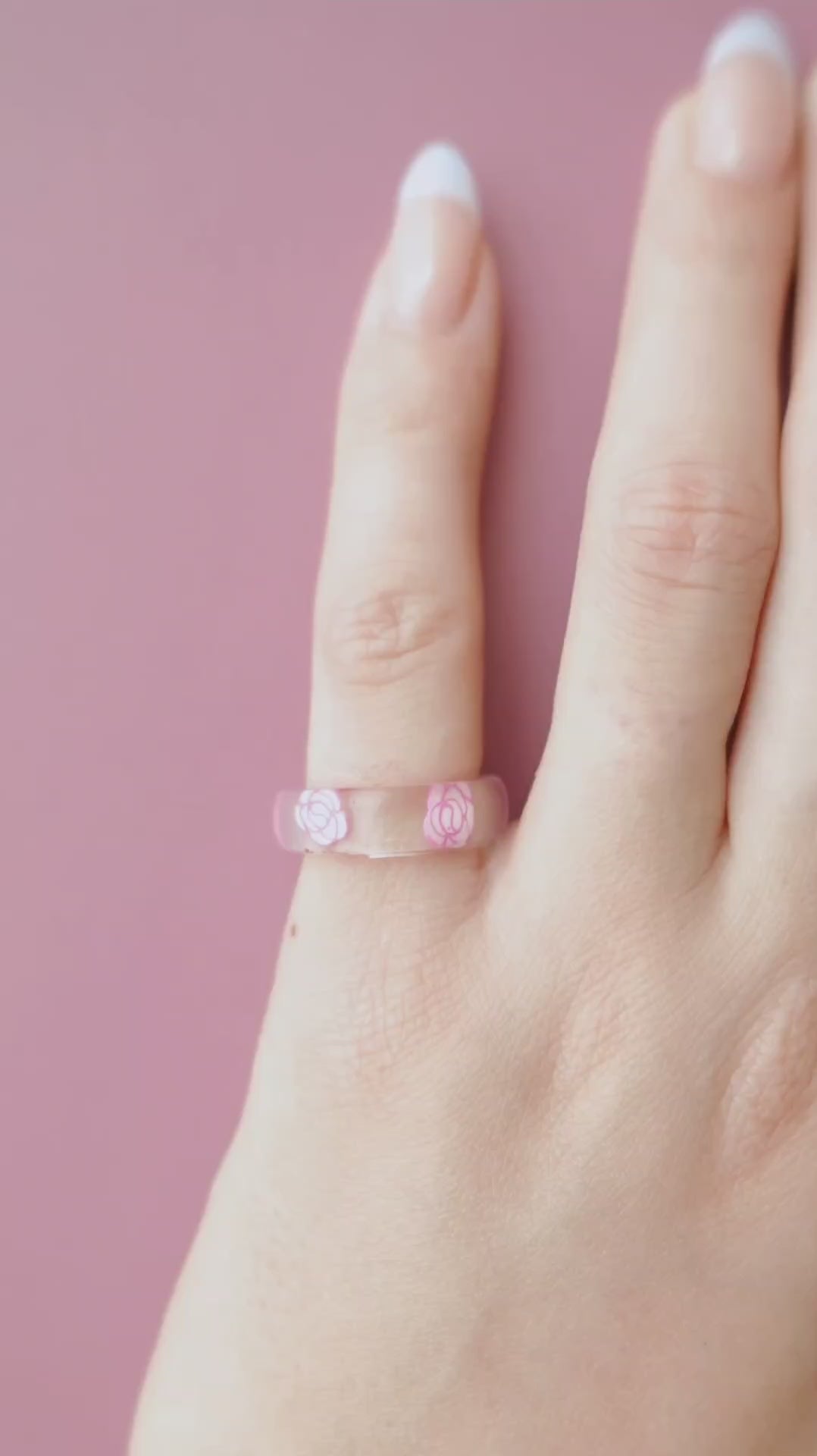 Are you a rosy kind of girl? This sweet ring is made from resin and features pink roses. Our rose resin ring is durable and light weight making it perfect for everyday wear. Wear it with a casual outfit or even your work attire, it’s super versatile and pretty.